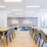 This large industrial space offers 4 tables with seating for 24, as well as a large and comfy lounge area to have a breakout brainstorm.