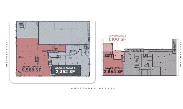 • Lower Levels 1 & 2 can only be leased with Retail Space A. Lower Level 1 is 2,854 SF and Lower Level 2 is 1,100 SF.